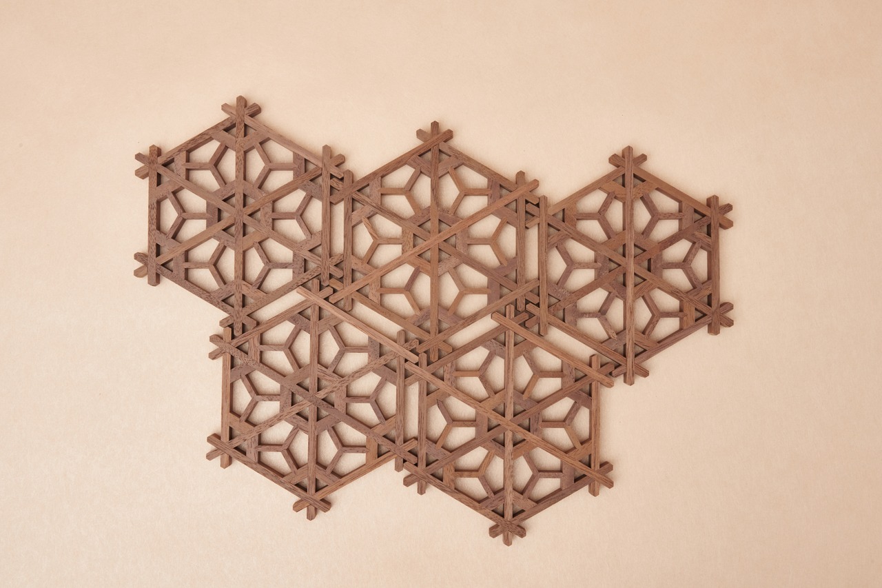 美しい文様で構成された組子タイルは、日本の組子技術を活かした一品です。そのデザインは、桜の花の美しさと自然の息吹を表現しています。使用される素材はタモ、ヒノキ、ウォルナットの3色をラインナップ。空間に合わせてご使用いただけます。タイルの一つ一つには職人の手作業による温かみが感じられ、インテリアだけでなく、店舗やギャラリーの装飾にもぴったりです。